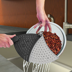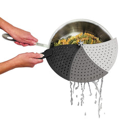手持把手,將展開的葉扇靠著鍋碗邊緣。