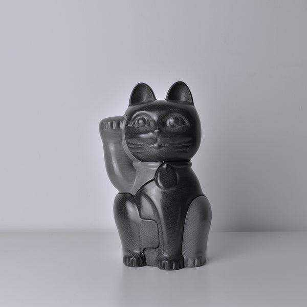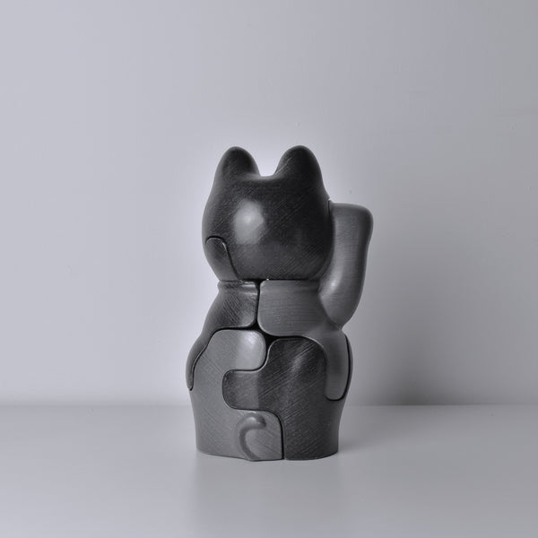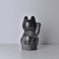手工立體拼圖造型幸運招財貓擺飾 - 大(黑灰)