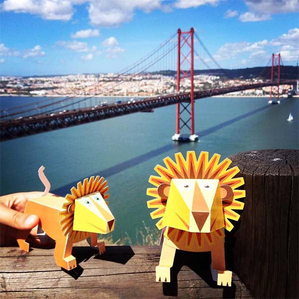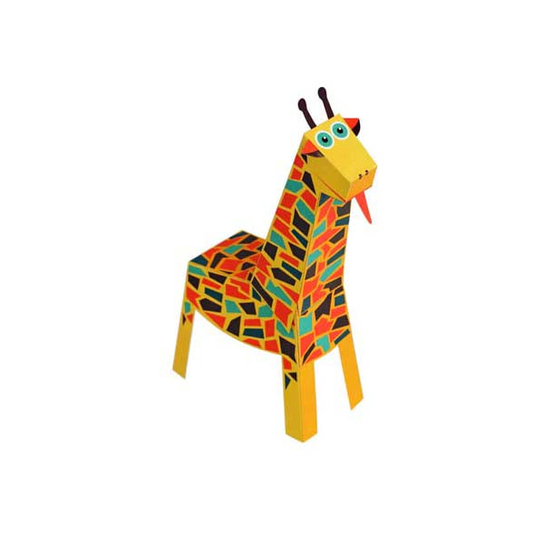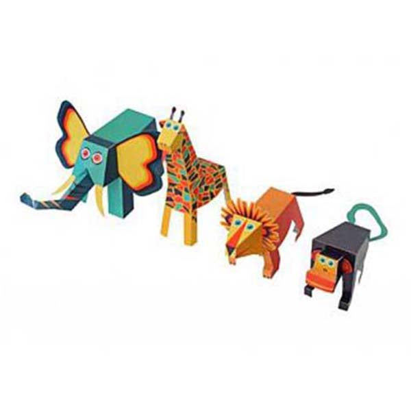 可以摺出 4 隻立體的動物: 大象,長頸鹿,獅子和猴子
