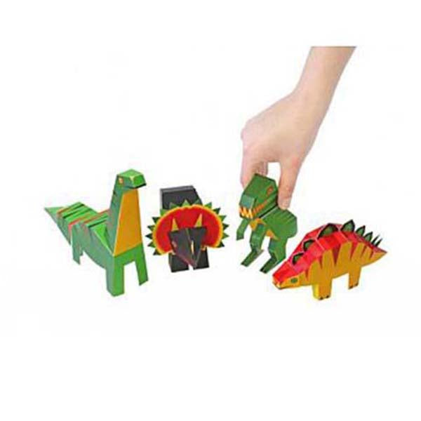 可以摺出 4 隻立體的恐龍: 梁龍,三角龍,劍龍和暴龍