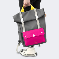 捲蓋式後背包 - Grey & Pink