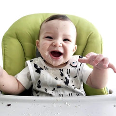 完全防護:展開於孩子的胸前及腿上,完全承接掉落的食物。