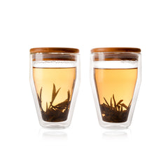 10oz 雙層耐熱玻璃平底杯 - 2入/裝 (附杯蓋)