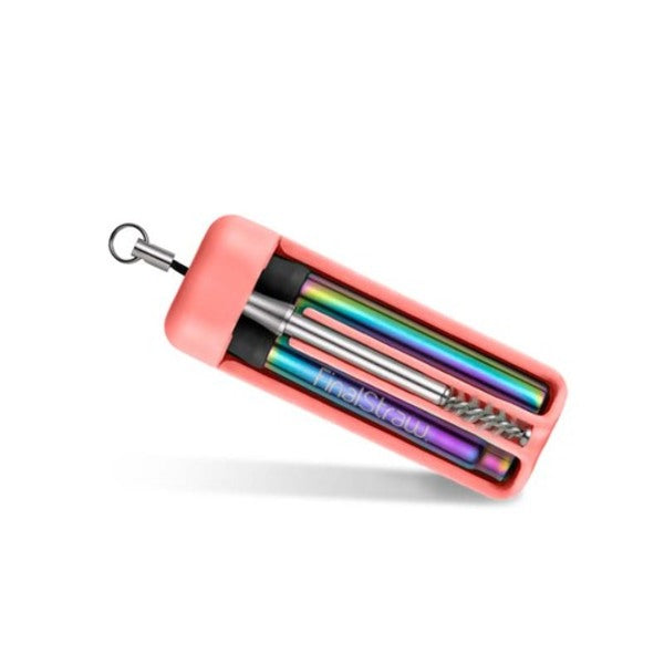 折疊式不鏽鋼環保吸管 - 珊瑚紅 (彩虹吸管)