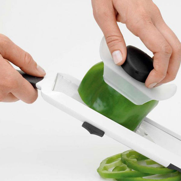 可將青椒、番茄等蔬果切薄片,省力又省時。三種蔬果厚度可自由調整
