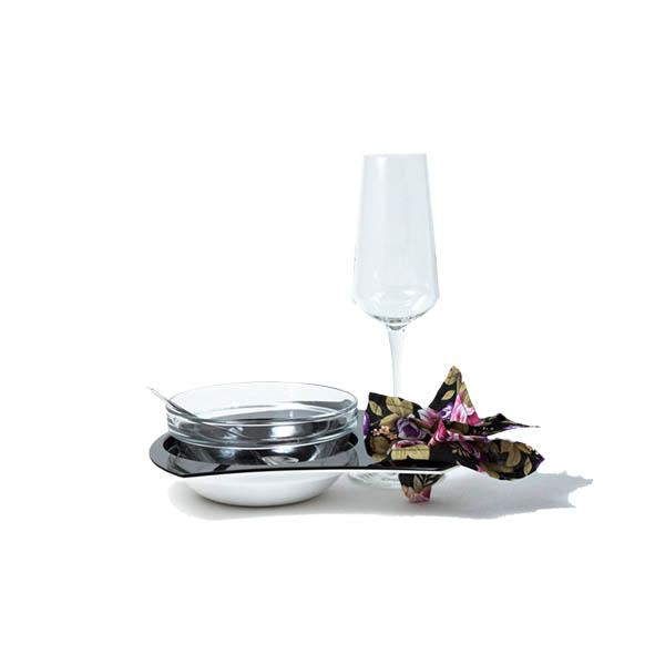 特意為這樣的情境設計了可以同時盛裝食物及酒杯合二為一的盤子。在社交場合中,你可以自在的交換名片、盡興的與人交誼,擁有美好的派對時光。