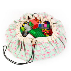 柔軟的材質,搭配可愛的圖案,可當作地墊,讓寶寶在上面盡情遊玩;幼童也能將自己心愛的玩具放在其上玩耍,遊戲結束後,輕輕拉上拉繩,輕鬆收納玩具;媽媽出門時,可將嬰幼童的尿布或玩具,收納其中,另附可拆卸的肩帶,可依需要與喜好,隨身揹在肩上或掛在嬰兒車。一物三用,讓生活變得更加輕鬆容易,深受大小朋友喜愛。