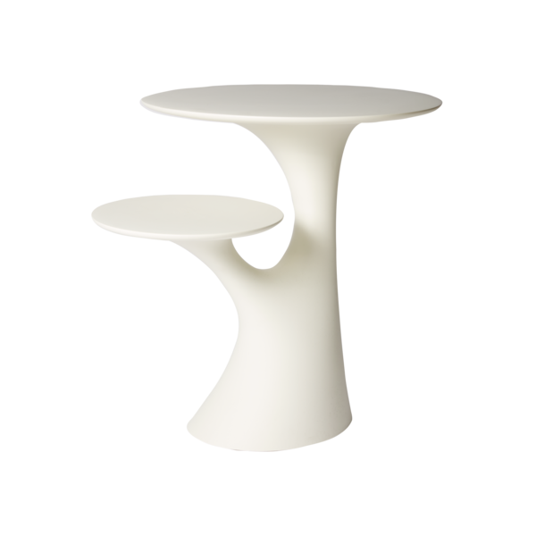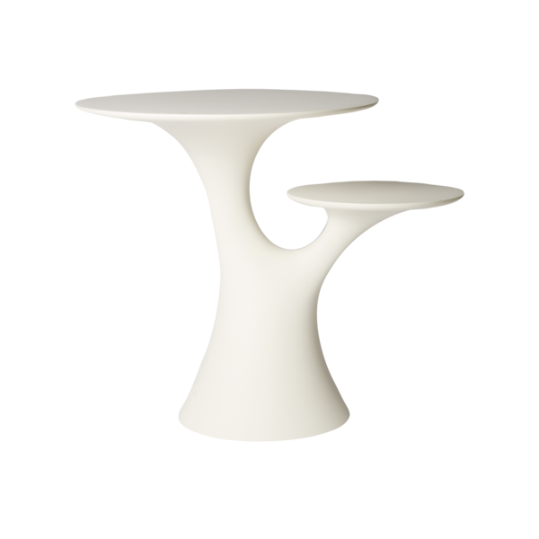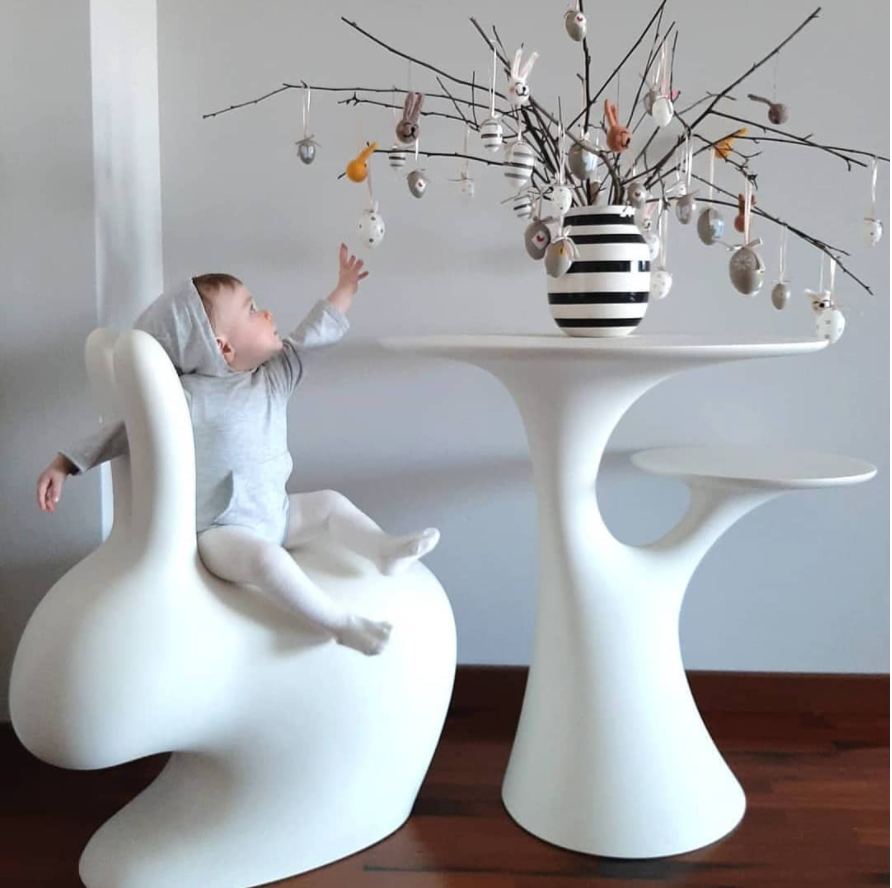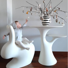 兔子樹造型邊桌是兔子椅子的桌子,它是兩層的小樹造型組成,極富未來感的設計極簡與反諷的呈現方式使其品牌更具特色