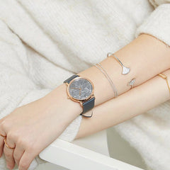 [女款] 灰藍浪花大理石皮革腕錶 (限量一隻)