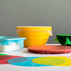 環保萬用食物保鮮膜吧!不僅可以微波、耐冷也耐熱,還比保鮮膜來得堅固,用起來就像蓋子一樣,可以將碗盤一層一層的疊起。