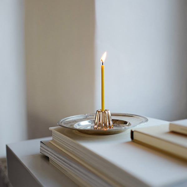 手工製作的青銅燭台,適用於細蠟燭或生日蠟燭(直徑 0.5 厘米),採用亮光拋光或暗光拋光飾面。