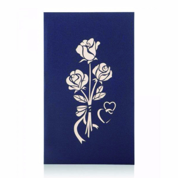 深藍色的封面將玫瑰花束襯托得相當簡約。打開卡片後,是一對戀人陶醉在充滿愛心的氛圍中。非常適合剛剛陷入熱戀的情侶表達彼此的情意。