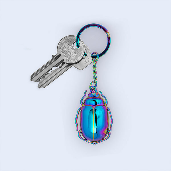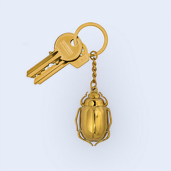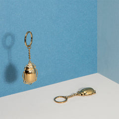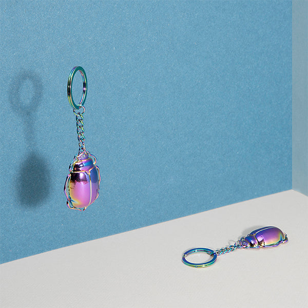 甲蟲鑰匙圈,挑選了金龜子這個大家熟知的昆蟲作為設計,並加上金色與亮彩等亮色系的顏色,巧妙地呈現出昆蟲最亮眼的那一面。將金龜子與鑰匙圈結合,也為了告訴大家,人與生態是可以和平共處的。