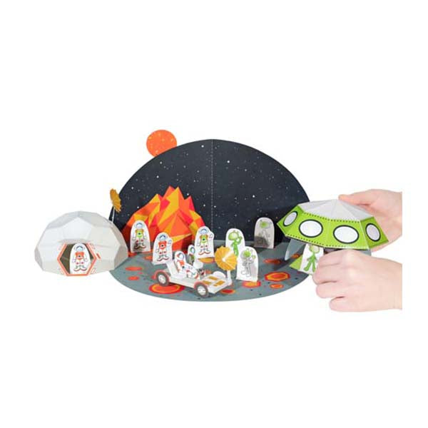 包含 1 個星空布景,10 個角色,1 個底座及 2 台車,其中一台是月球探測車