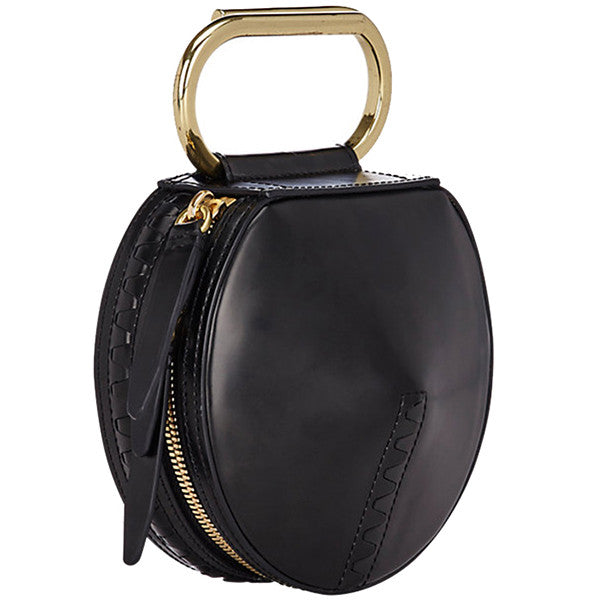 A new approach to the evening clutch, Phillip Lim designs this piece using polished leather with an exaggerated braid detail. Features a gold handle, making it easy and flawlessly chic to wear.
