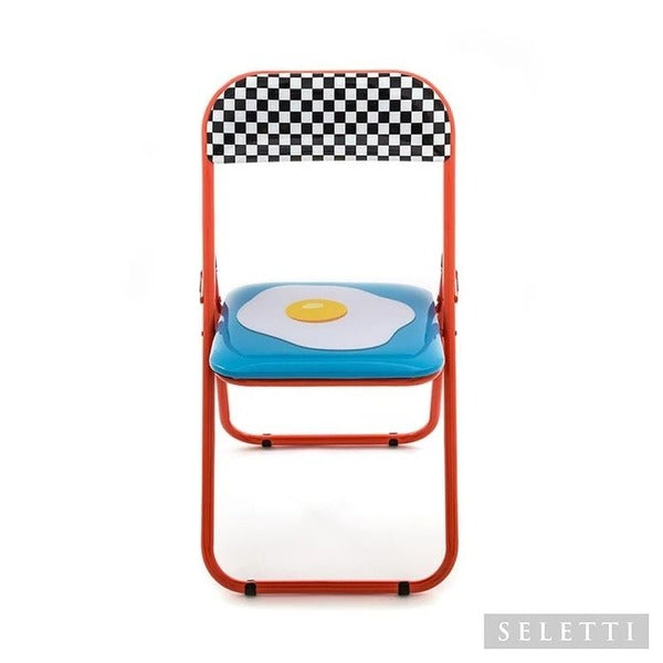椅子採用金屬和 PVC 座椅製成,簡單可折疊,坐板上色彩斑斕的大膽圖案,必將成為家中最吸引眼球的單品。