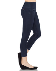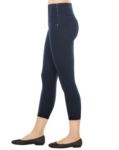 Women kept asking for help squeezing into their skinny jeans, so we put the skinny in the jeans and launched Shaping Denim Leggings. Now, we’ve answered your call yet again and are excited to introduce the cropped version…jeanious!