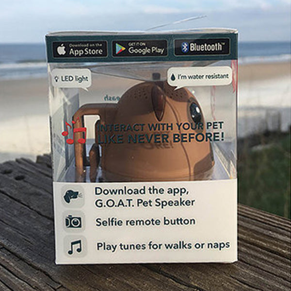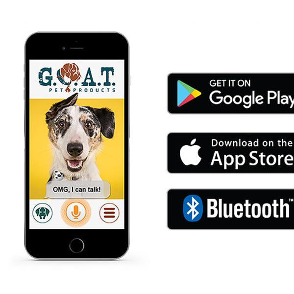 G.O.A.T. 寵物互動式音箱使用藍牙技術播放音樂,與 G.O.A.T 音箱配對時,內置自拍遙控按鈕、LED 燈、防水等。App 提供了許多方便的功能,自定義的寵物配置文件,給你的寵物一個聲音可用作培訓工具、服務動物 “請坐寵物、我在訓練”,或只是有趣的打招呼、請求一個禮物,或者 “輪到你來取... 等有趣的互動式對話,讓你的寵物可以說任何你想讓牠說的話。