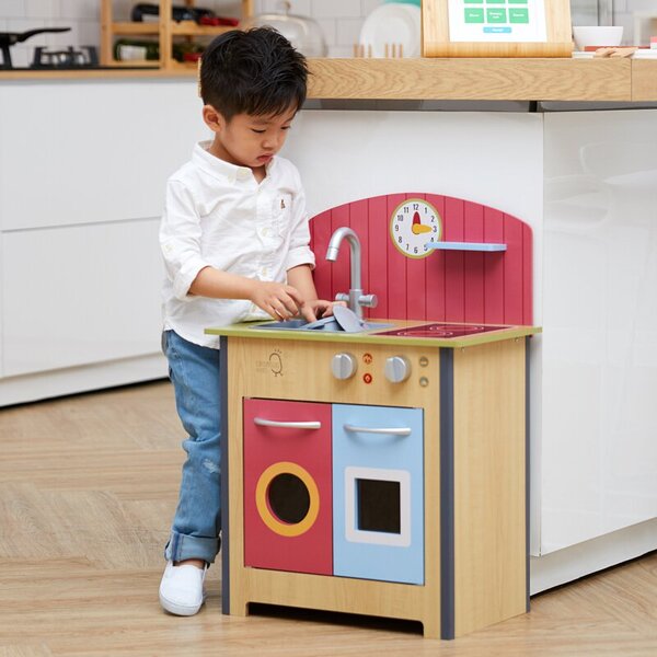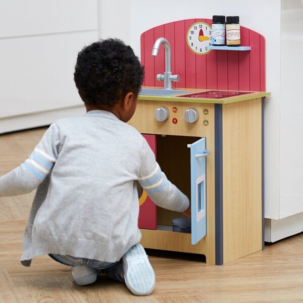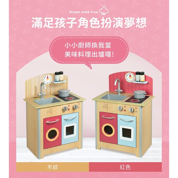 小廚師波爾多木製家家酒玩具小廚房-木紋/紅色