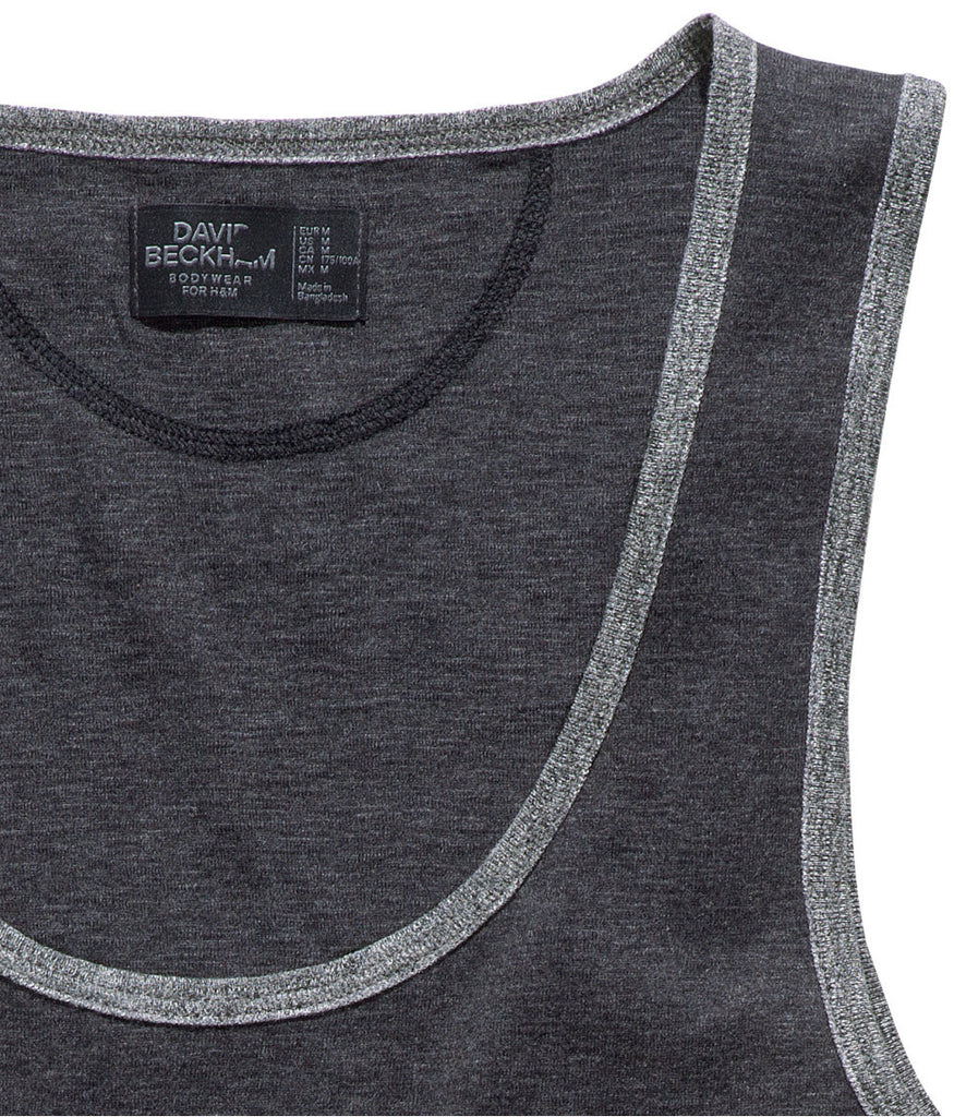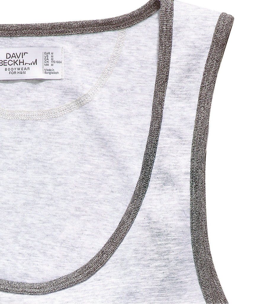 David Beckham Bodywear. Tank top in striped cotton jersey with one chest pocket, visible seams, and small slits at sides. Slightly longer at back.