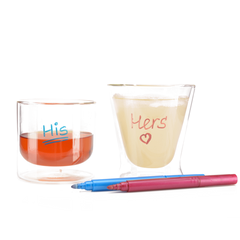 可寫在任何玻璃表面上,其乾燥 3 到 5 分鐘,即使拿著杯子,墨水也不會沾黏