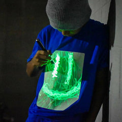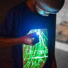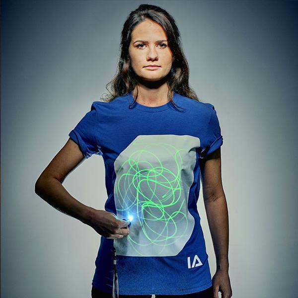 英國 Illuminated Apparel 公司設計的 T 恤具備螢光效果,衣服的正面由特殊材料製成,白天看上去就是一件普通的白 T 恤,但是在晚上就變得不同尋常了。允許用戶充分發揮想象力,在衣服上隨意進行塗畫,借助隨附的 UV 鑰匙圈或手機的手電筒,就可以看到你畫的圖案了。你可以畫一些酷炫的圖案,或是透過手創建炫酷的陰影效果,也可以寫一些表達自己心意的句子,當夜色降臨,女神就可以看到你用心的表白了。Illuminated Apparel 螢光 T 恤有三種款式可供選擇,讓您擁有獨一無二的情侶裝。