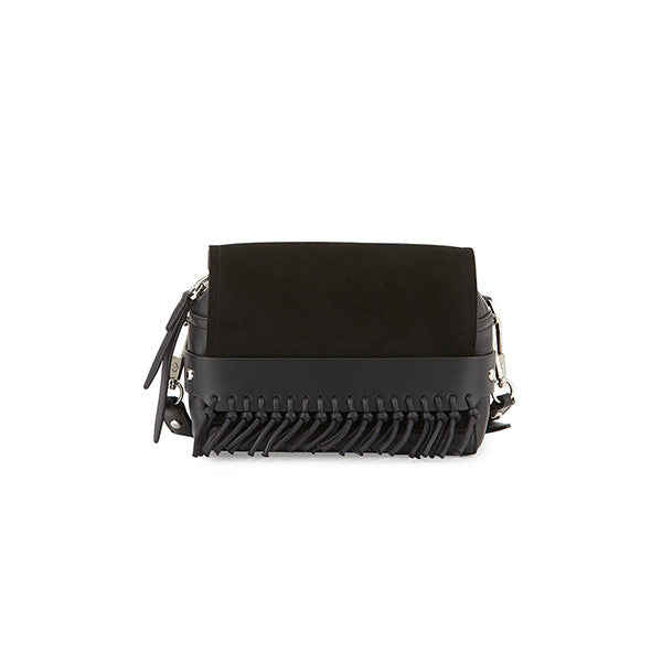 The small Bianca black crossbody is crafted in leather with knotted fringe detail, forming clean lines with a chic rock attitude. Featuring flap top closure with slip band, internal zip pocket, detachable shoulder strap with hand stitch and silver tone hardware detail, this is your new everyday staple that is neutral enough to match with your entire wardrobe!