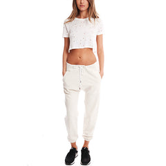 Ultra luxe sweatpant by 3.1 Phillip Lim, featuring a white drawstring, side pockets, and elastic cuffs at the ankles.