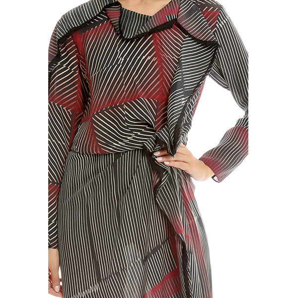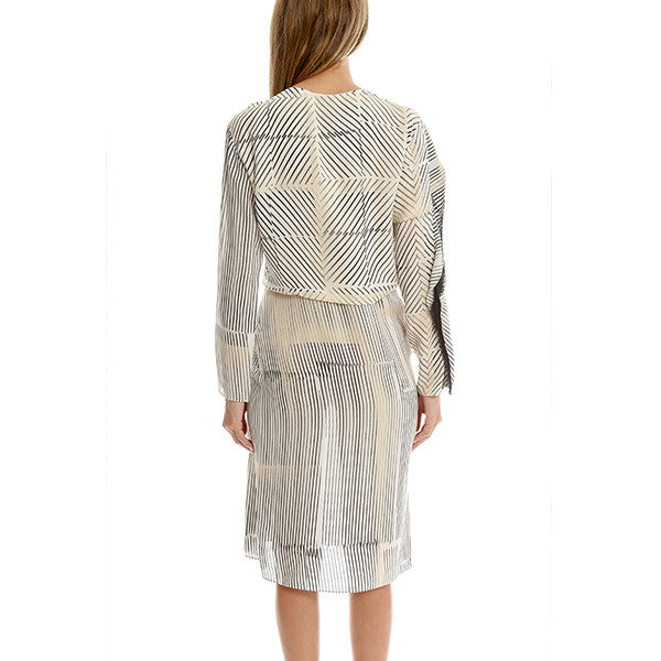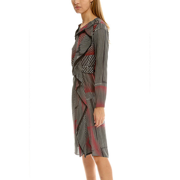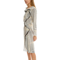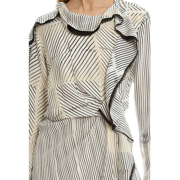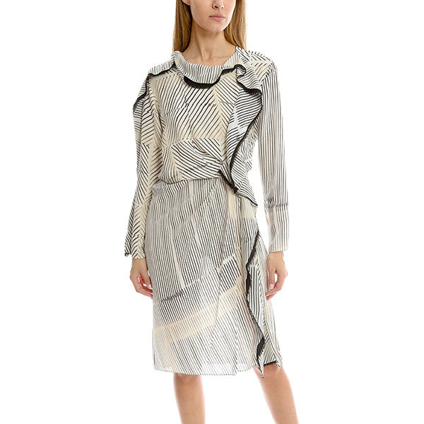 Ruffle your cares away in this elegant long sleeve dress by 3.1 Phillip Lim. Frayed edge adds texture cascading down one side of the dress with a modern line print. Style with heels for a work to play look.