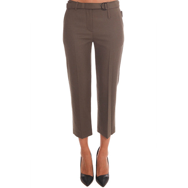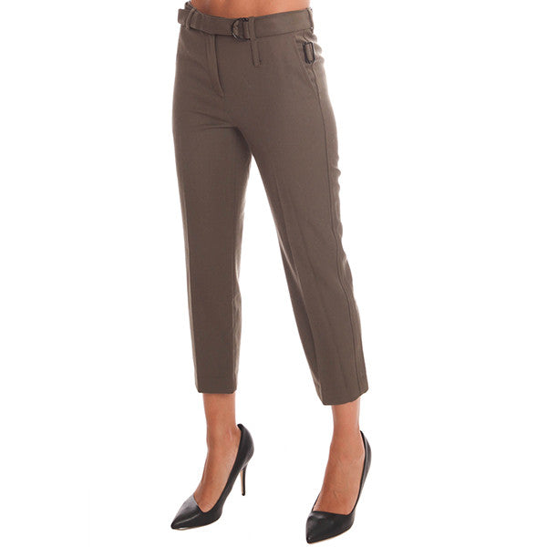 A great cropped pant with accompanying belt by 3.1 Phillip Lim. Featuring a front zip, side pockets and back button pocket.