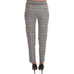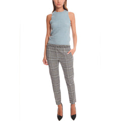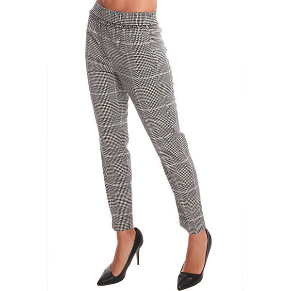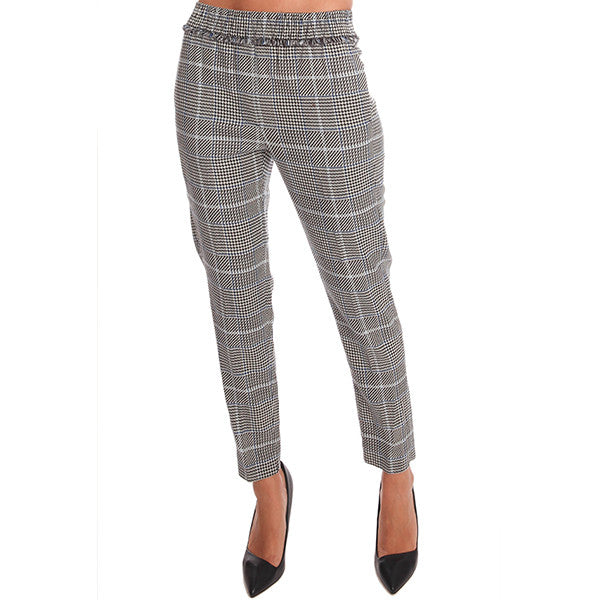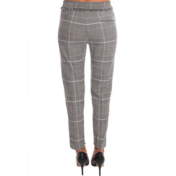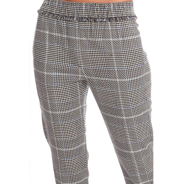 Easy slip on trouser featuring a slim cut and smocked waistband with frayed details in a powerful print.