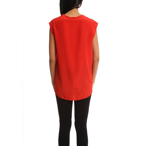 Effortless elegance by 3.1 Phillip Lim. Sleek loose fitting silk drape top with subtle V neckline. A fun color pop that will take you from work to play!