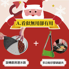 CLEVER TONGS 多功能矽膠鍋鏟夾 (2入組) 1 組+旋轉廚房瀝水器 1 入