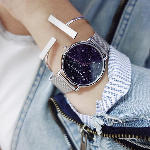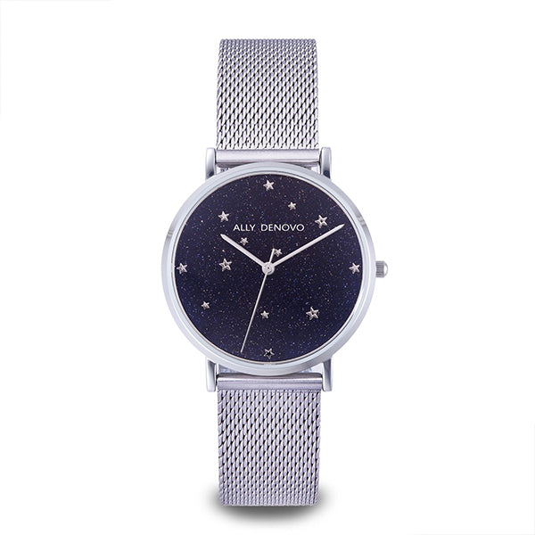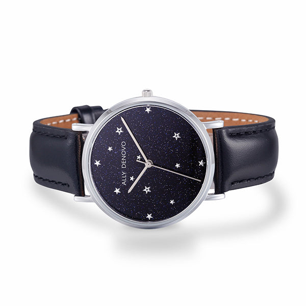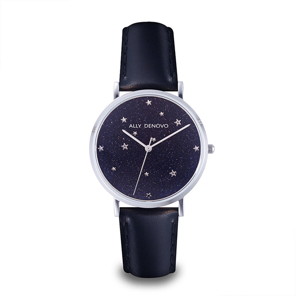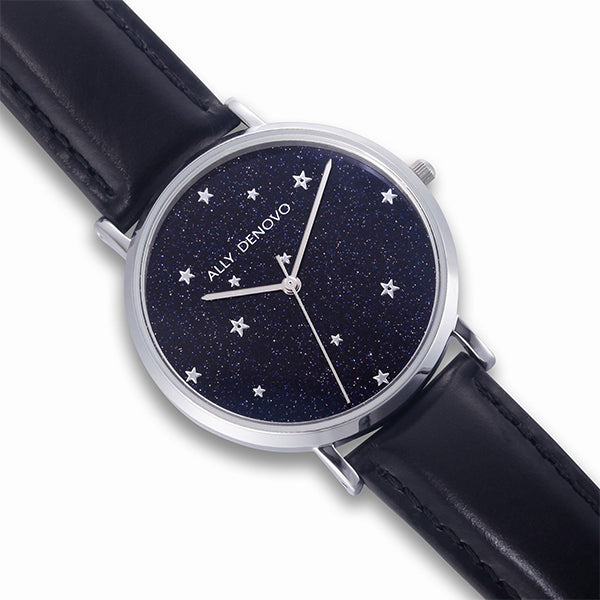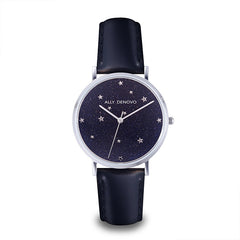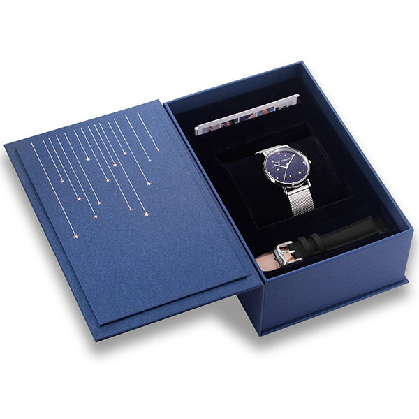 [女款] 神秘星夜雙錶帶系列 - 銀鍊帶 + 黑色真皮錶帶 (限量三組)