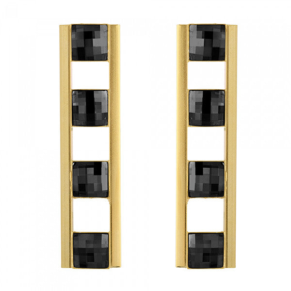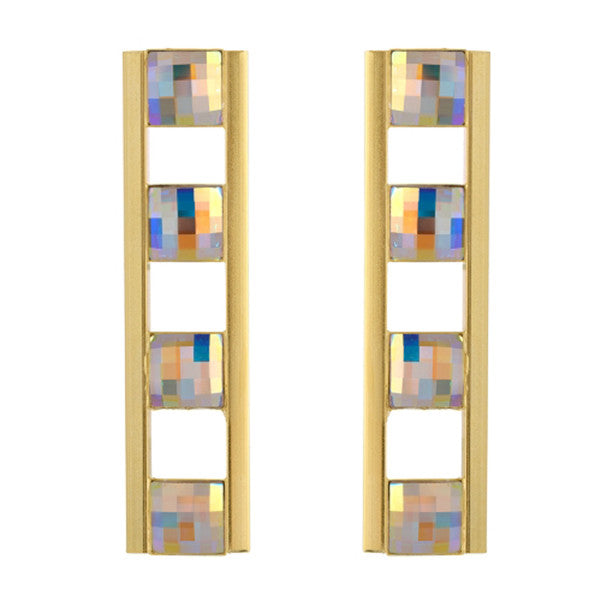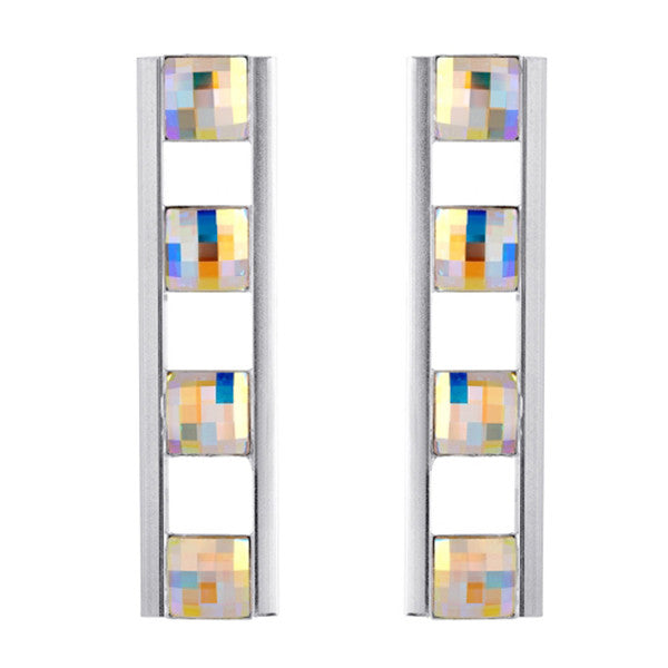 2 3/4" long bar earrings with black / multicolor Swarovski Crystals