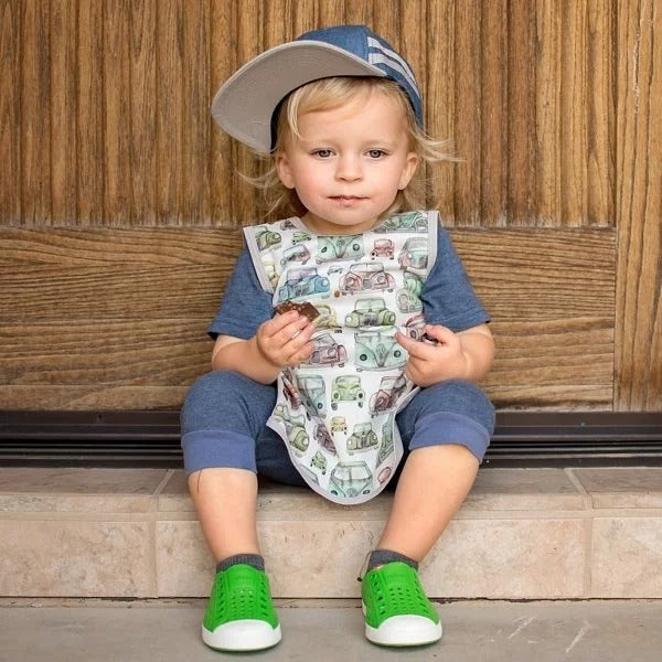 結合圍兜兜與圍裙的功能,直接穿在寶寶身上,沒有圍在脖子上的異物感,柔軟舒適得就像衣著一樣,特殊 ezClean 布料,防水、防汙、易清潔,洗淨後僅需3 0 分鐘即可自然風乾,一件即可滿足多餐使用。