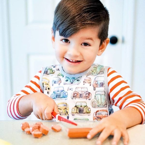 多元的使用場合,不論用餐、繪畫、烘焙皆可使用,完整的穿戴方式提供全方位防護,不論是黏呼呼的義大利麵醬或者容易沾染衣物的彩繪顏料都不怕,讓孩子及家長都能無後顧之憂地享受愉快的用