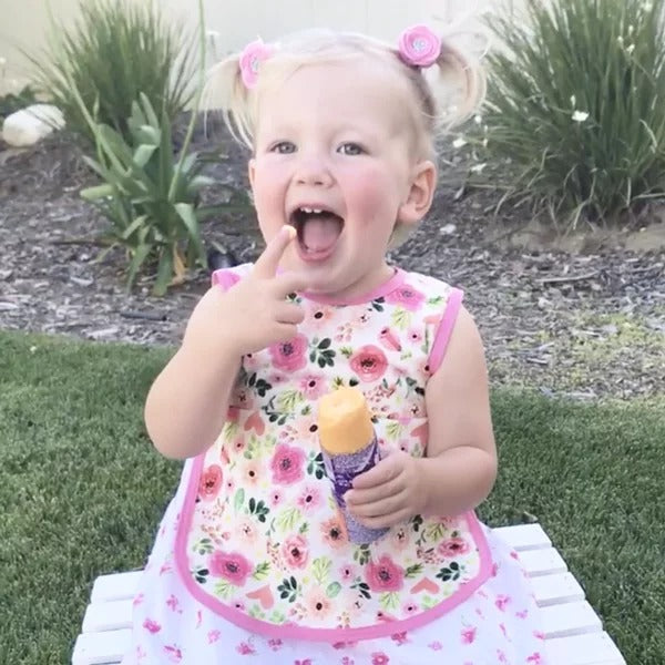 結合圍兜兜與圍裙的功能,直接穿在寶寶身上,沒有圍在脖子上的異物感,柔軟舒適得就像衣著一樣,特殊 ezClean 布料,防水、防汙、易清潔,洗淨後僅需3 0 分鐘即可自然風乾,一件即可滿足多餐使用。