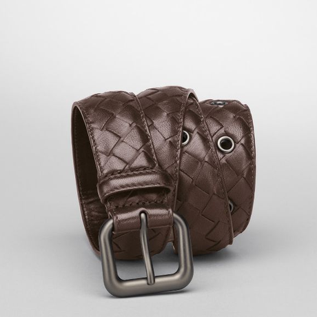 Finely crafted in intrecciato nappa leather, this versatile belt has a beautifully sculpted look and feel. With an exquisite glossy finish, the design features a brunito-finish buckle and silver-tone eyelets.