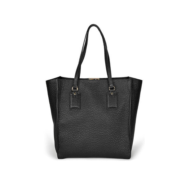 Lavishly textured leather defines the clean, elegant profile of a spacious tote ornamented with logo-etched goldtone hardware.