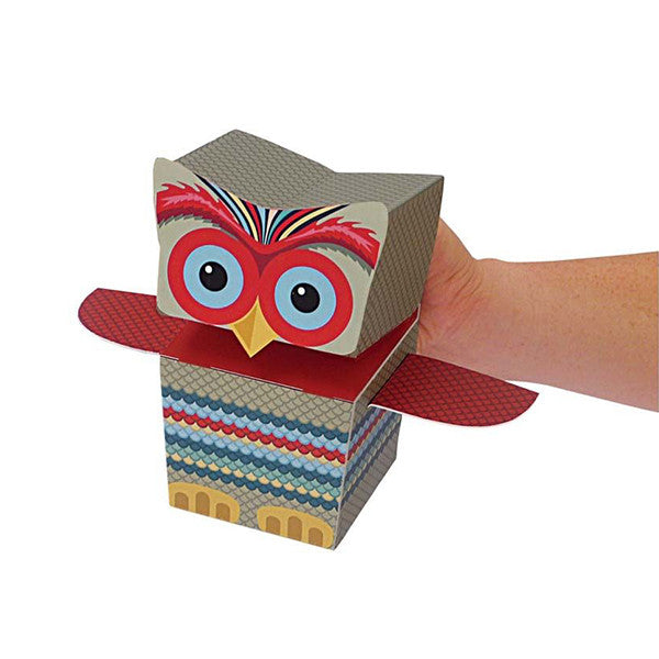 貓頭鷹媽媽是手掌玩偶,隨著手的動作,牠的嘴巴可以開開合合