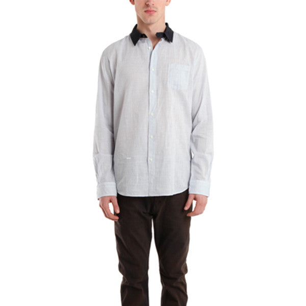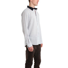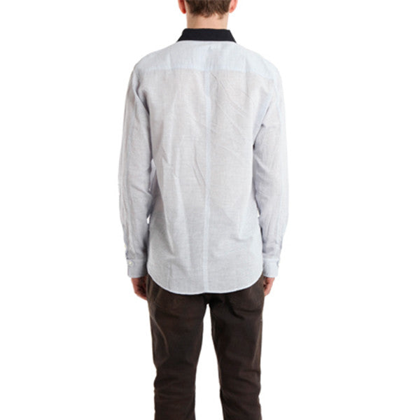 Robert Geller makes clothing for the individual. Each season he produces only a limited number of pieces offered only in the most select retailers in the world. This contrast collar long sleeve is a lightweight piece. With versatility you can pack it for your European Vacation or wear lost over an unshaven weekend in Tribeca.