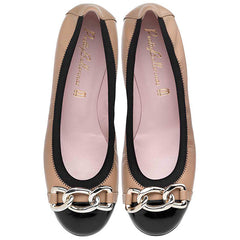 柔軟羊皮製做的鞋身拼接黑色漆皮鞋頭