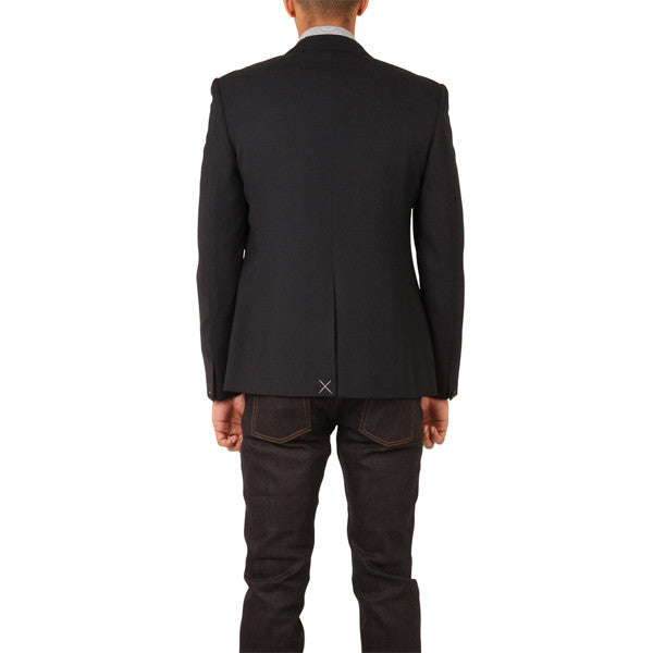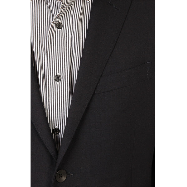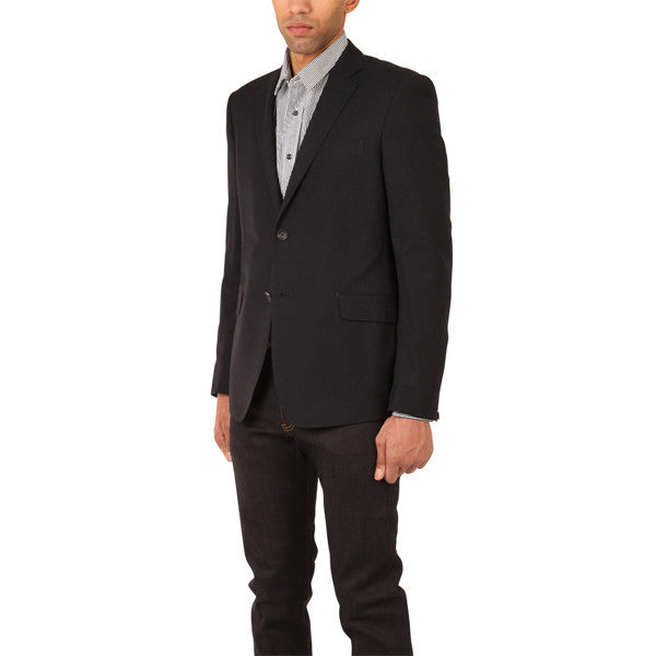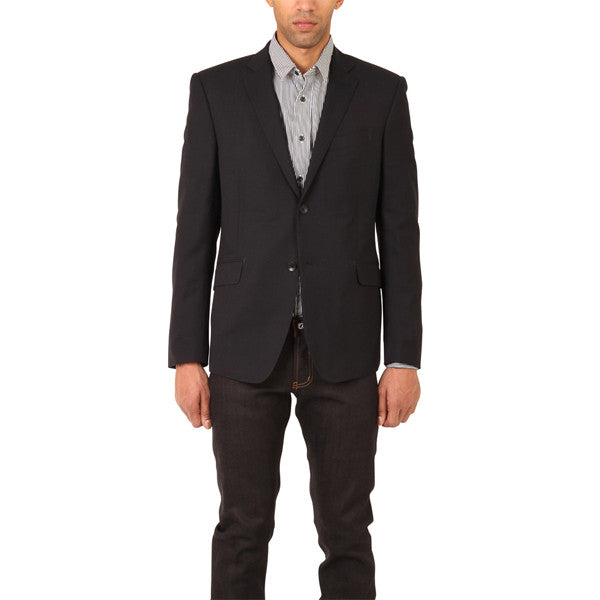 A classic versatile day to night blazer in a trim fitting, definitive style. This wool two button sportcoat comes with notched lapels, welt pockets at chest & flap side pockets.
