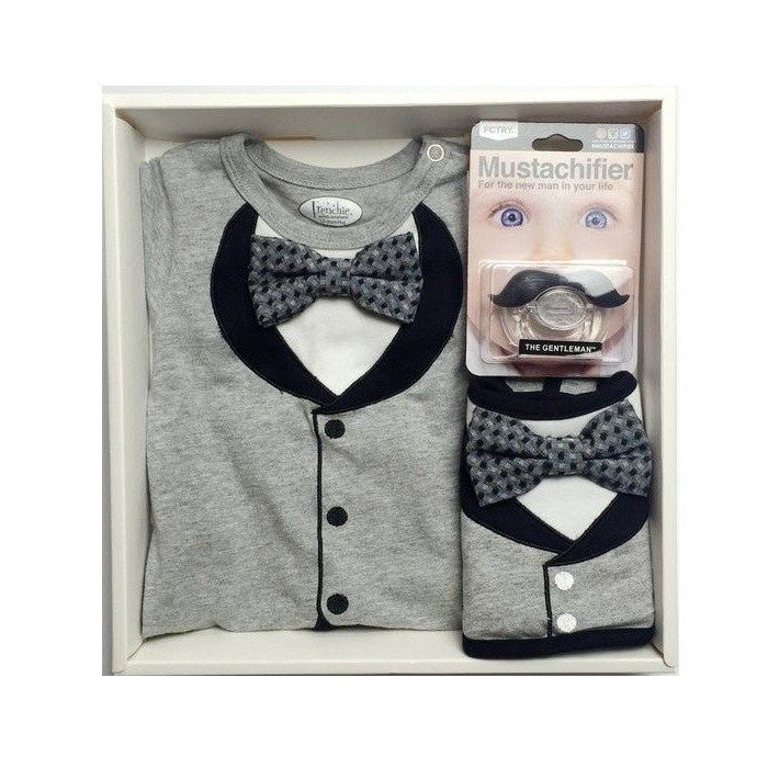 立體點點燕尾服禮盒組 (包屁衣+圍兜+奶嘴)