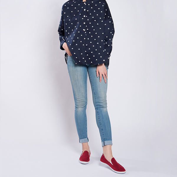 具有樂福鞋與懶人鞋的經典設計,而 fye 追加的是一份自我要求的秀氣,腳掌看起來不會開開的、鞋身線條看起來是修長的,鞋跟的鬆緊帶可以在辦公桌下、回家的路上給自己內心保留一份輕鬆的生活空間