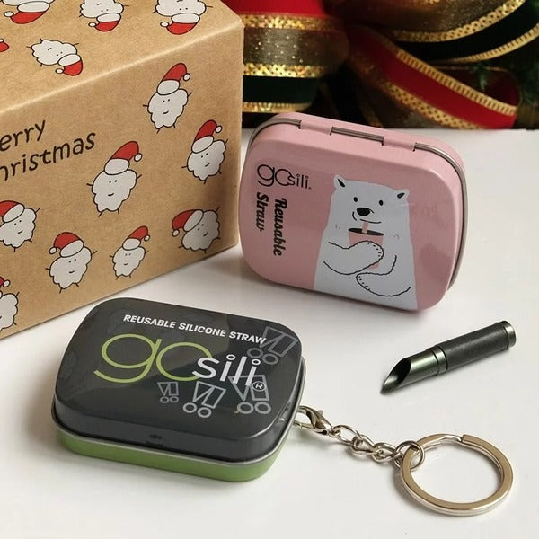 聖誕吸管插畫禮盒組鑰匙圈 - 沉穩灰 + 北極熊 附切口器