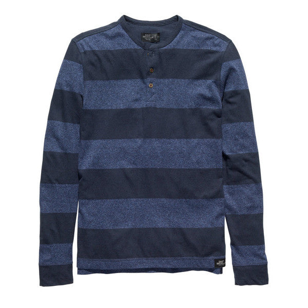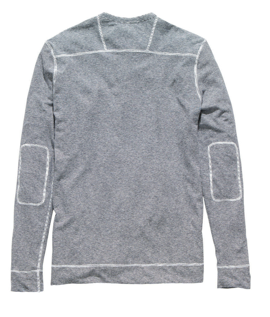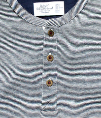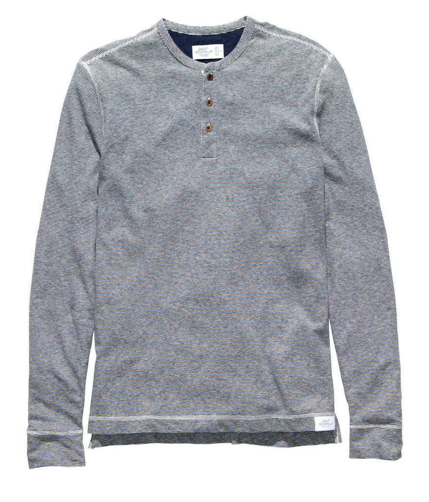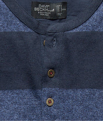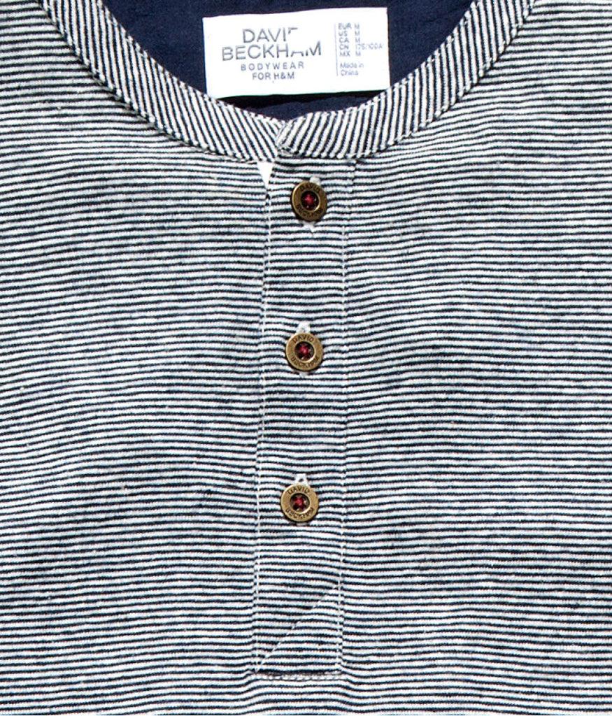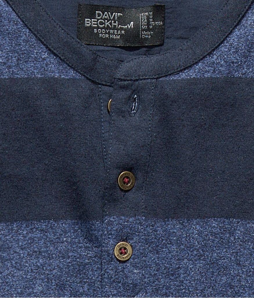 David Beckham Bodywear. Long-sleeved henley shirt in striped jersey fabric in a cotton and linen blend. Small stand-up collar and front button placket. Small slits at sides, slightly longer at back.