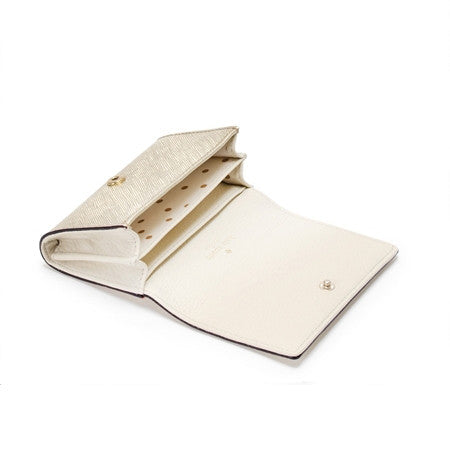 Inspired by Mikas Pond, a stunning section of nantucket known for brant point lighthouse, Kate Spade crafted this small wallet in luxe embossed leather with clean lines to carry your credit cards or currency from wherever your adventures may take you.