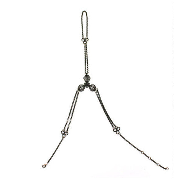 Our newest barefoot sandal style made of delicate lace like filigree. Can be worn barefoot or paired with sexy heels. Sold as a pair (one color per pair). Available in 2 colors: Black Lace or Gold Lace. Adjustable, one size fits most. Handmade in USA. Brass.